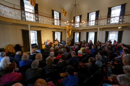 Plus de 350 personnes se sont déplacées au Morrin Center le dimanche 19 mai pour y entendre le son de l’accordéon diatonique. Présenté par le Carrefour mondial de l’accordéon, Accordéon trad réunissait Raynald Ouellet et Bruno Gendron pour un voyage musical entre musique traditionnelle et populaire. Les deux musiciens sont revenus enchantés de l’enthousiasme général du public.